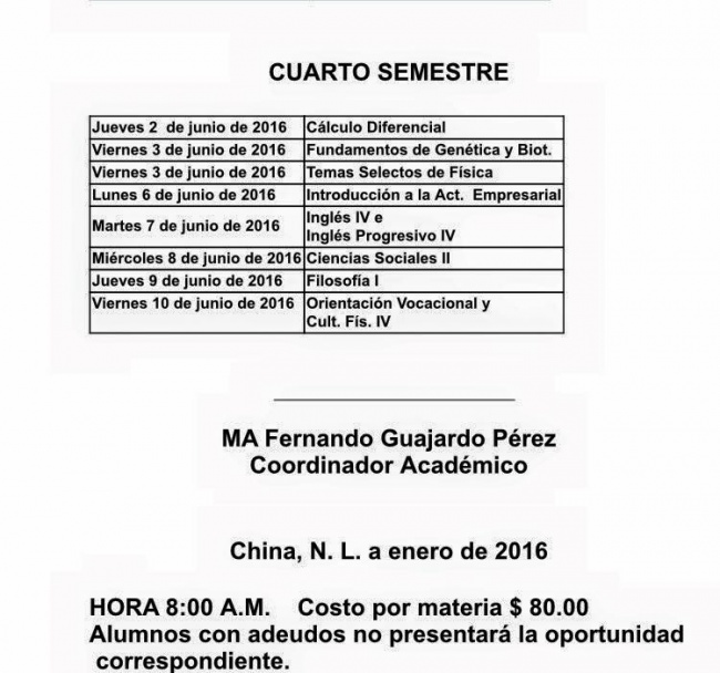 Horario de Segunda Oportunidad
